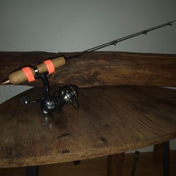 Pimpelspö Teleskåp med korkhandtag, uppdragen ca 25 cm,utdragen ca 60 cm,vikt 60 g. Styv topp. Passar perfekt för grövre fiske såsom Rengbåge, Röding och Öring. Nytt.