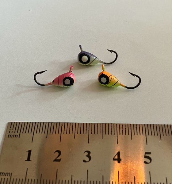 3st lite större mormyskor 2g/st bra till abborre och ädelfisk.
