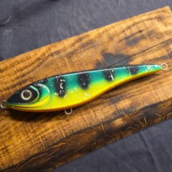 Fiskedrag med färgglada blad samlarobjekt eller fin fint bete att fiska med. Skick enligt bild.