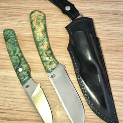 En helt ny TRC i original låda med kydex och läder slida Pris för kniven ligger på 4.200:- och slidan på 870:- totalt ca 5.000:- Riktigt kraftig och fin kniv med blad i Elmax stål enligt bilder.
