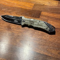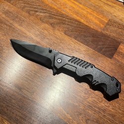 En praktisk fällkniv med ett robust handtag och en vass blad. Levereras med ett fodral för enkel förvaring och transport.