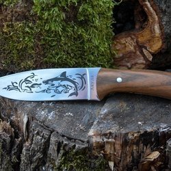 Det finns en praktisk ögla i änden av handtaget som gör att du kan hänga kniven på ett rep eller rem, vilket gör den lättare att förvara och transportera.
