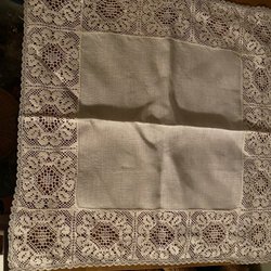 Lite äldre vit duk i linne/linneduk/kaffeduk med fint mönster, 103x100 cm, fint skick