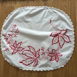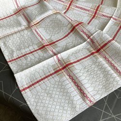 Vit duk med broderade ränder