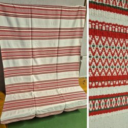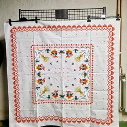 Stor vintage köksduk linne vävd duk linneduk äldre rutig vit orange blå gammal