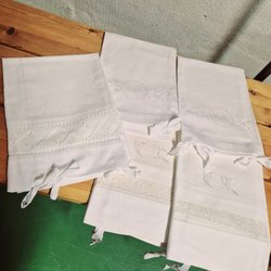 Enligt min bedömning oanvänd. Manglad, fräsch lukt och mycket omsorgsfullt bevarad. Ungefär 90 x 80 cm.