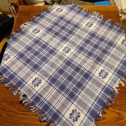 En fin äldre rutig duk i brunt och beige. 1 m*94 cm. Tror den är vävd och gissar på linnematerial. Väldigt fin och oanvänd.