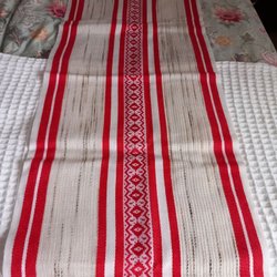 Duk I linne, 2-färgad. Mått: 84x 79 cm. Troligtvis hemvävd på 60-70 talet. På bilderna ser det ut som det är 2 beiga färger, men det är 1 beige och en ljus ljus grön. Svårt att se.
