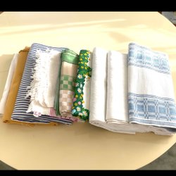 Allt i ett: rest av nya halvlinne dukar för att rensa lagret.