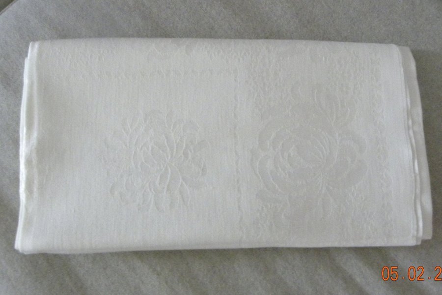 Vit damastduk med vackert mönster - 140x140 cm