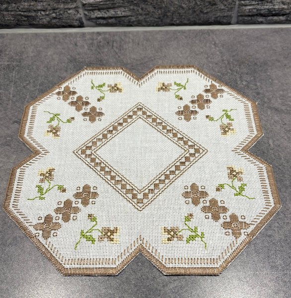 "Broderad duk" - med brun/bronsfärgade blommor.