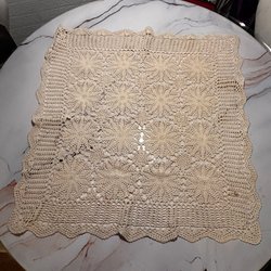 Vacker vävd duk med ett intrikat mönster. Den har en ljus, neutral färg som gör den lätt att matcha med olika inredningsstilar. Perfekt som en dekorativ detalj på bordet eller som en unik väggdekoration. Mått ca 87 x 40 cm.