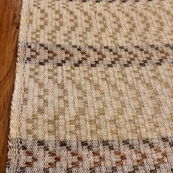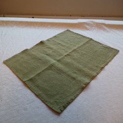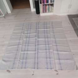 Linneduk med rutigt mönster. Cremevit, rosa med svarta detaljer. Använd men i mycket gott skick, 95x95 cirka.