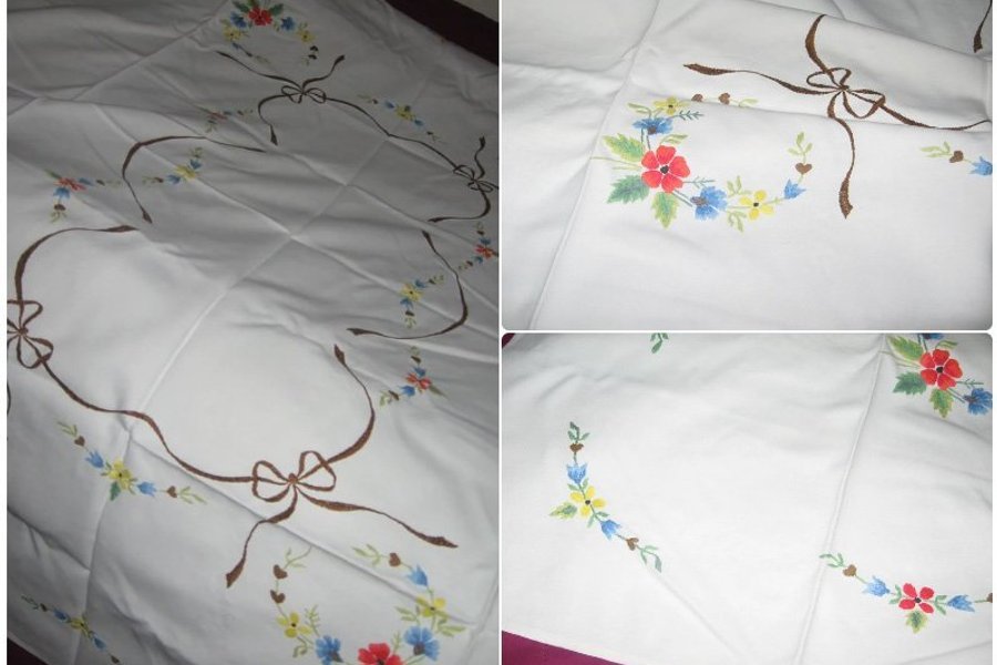 Stor handbroderad kaffeduk