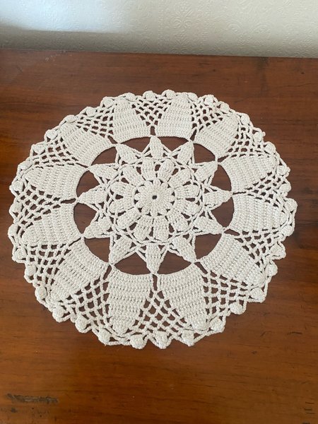 Vit rund virkad duk