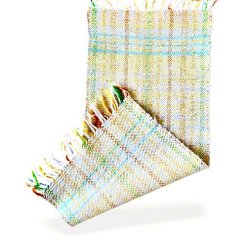 En vacker handvävd bordslöpare i ljusa färger. Den har ett fint rutmönster och dekorativa fransar. Perfekt för att ge ditt bord en personlig touch.