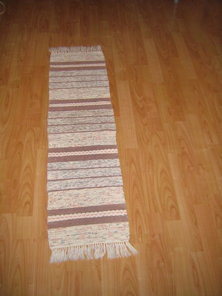En traslöpare i brunt vitt rosa och flerfargade ränder i bomull ca 6 cm långa fransar