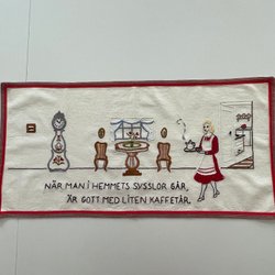 Mycket fint skick och välsydd retroduk. Mått: 120cm x 16cm