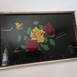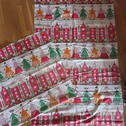 Ett set med diverse dukar, tre fyrkantiga "kaffedukar" med blommor och en broderad löpare. Löparen har en fläck, de tre övriga ser inte ens använda ut.