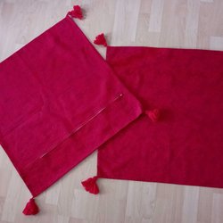 Röda gardiner i bomull med hällor mått se nedan.