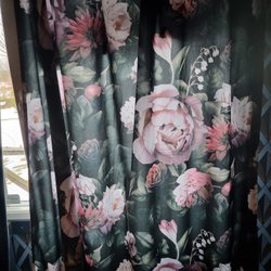 Två vackra gardinlängder med ett mönster av blommor och ränder. Perfekt för att skapa en elegant och ombonad atmosfär i ditt hem. De är sydda av tjock, fin kvalitet tyg. Mått 218 långa och 140 breda