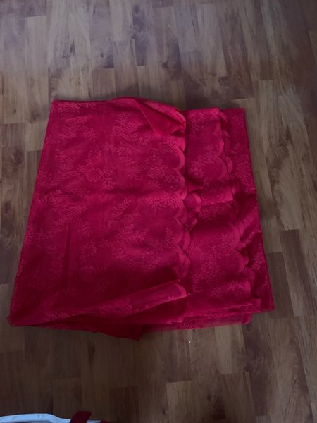Röda spets gardin längder