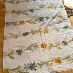 Två ljusgröna/turkos gardinlängder. Längd: 2,30 m bredd 1, 40 m. Tunt/skirt tyg. Två alternativ till gardinstång.