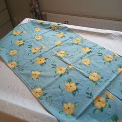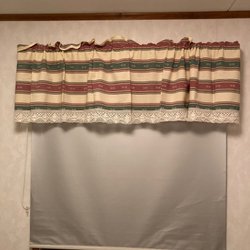 Mönstrad gardinkappa. Enl.bilder.