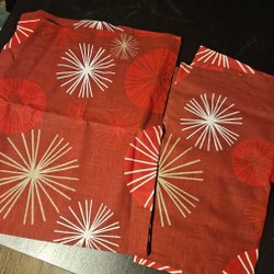 Röda panelgardiner att använda som gardin eller som lång duk för ett stort bord eller som kort duk tvärs över bordet.