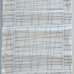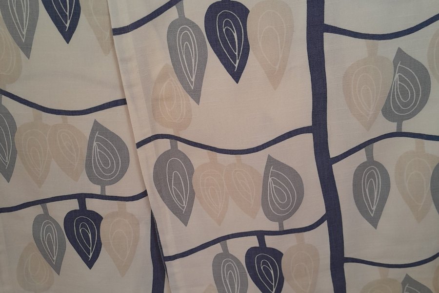 Två st gardiner i ganska kraftig bomull, 40 cm breda, 2 meter långa.
