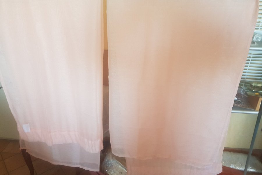 Ett par rosa gardiner som kan passa perfekt i ditt hem. De släpper igenom ljus på ett fint sätt.