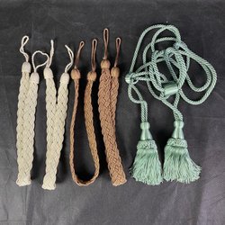 Ett par gardinomtag i silver och vitt. Perfekt för att hålla dina gardiner snyggt på plats.