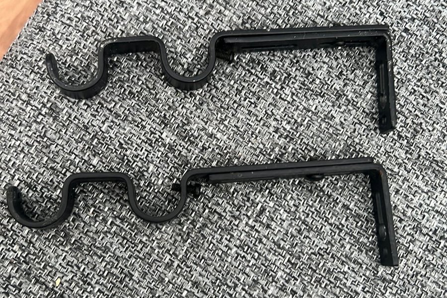 Gardinstångshållare i svart färg. Passar för att hänga upp gardinstänger.