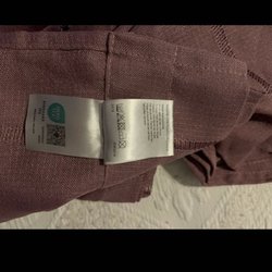 En gardin bredd 210 längd 110cm vid sidorna , mitten 40 cm, uttag för gardinstång