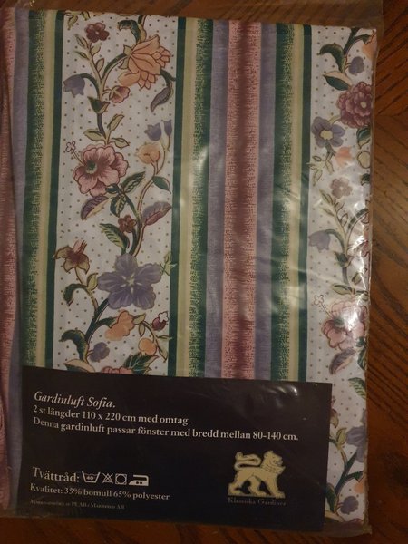 Gardinluft Sofia, 2 st längder 110 x 220 cm med omtag. Passar fönster med bredd mellan 80-140 cm. Material: 35% bomull 65% polyester.