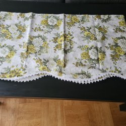 Mörkläggnings gardiner med ett vackert träd mönster i blåa och rosa nyanser. Gardinen täcker halva fönstret för att skydda sol eller syn.Den är av hög kvalitet och aldrig använt. Gardinen är köpt från jutex . Längden är 138 cm och bredden är 178 cm.