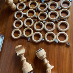 Gamla gardinringar i vad jag tror är porslin. Några av ringarna har öglor. Lite olika storlekar.