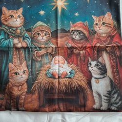 Dekorativt kuddfodral med ett vackert tryck av en katt omgiven av blommor. Perfekt för att ge ditt hem en personlig touch. Enkelsidigt ca 45x45 cm.