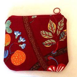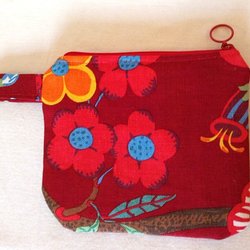 Bottenfärgen är röd med blommor och blad i olika färger, se bilder.