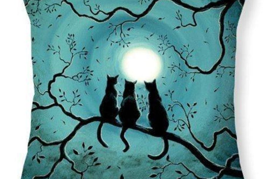 Ny 3-pack Mysiga Kuddfodral Blå med "svarta katter på en gren"