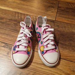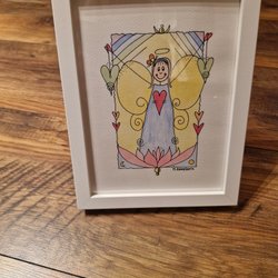 Kuddfodral med ett färgglatt mönster av blommor och hjärtan. Målad av Majvi Romeborn. 50×50 cm.