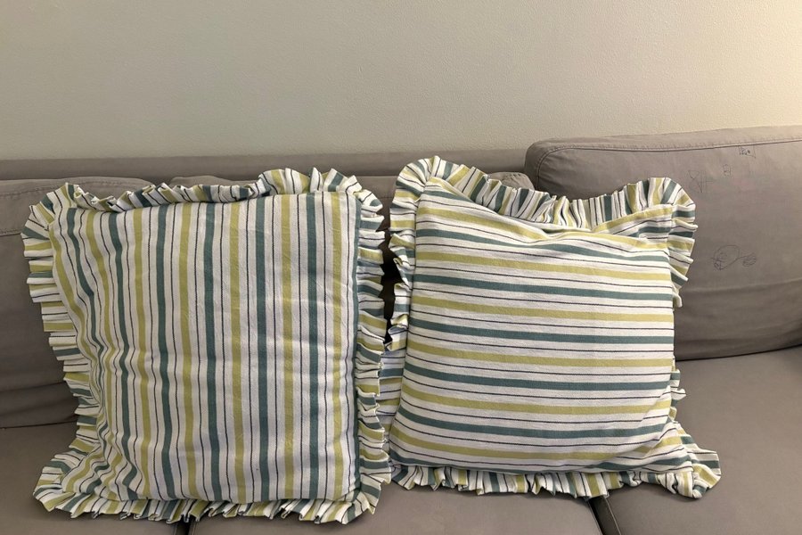 Two Striped Throw Pillows with Ruffle Edge