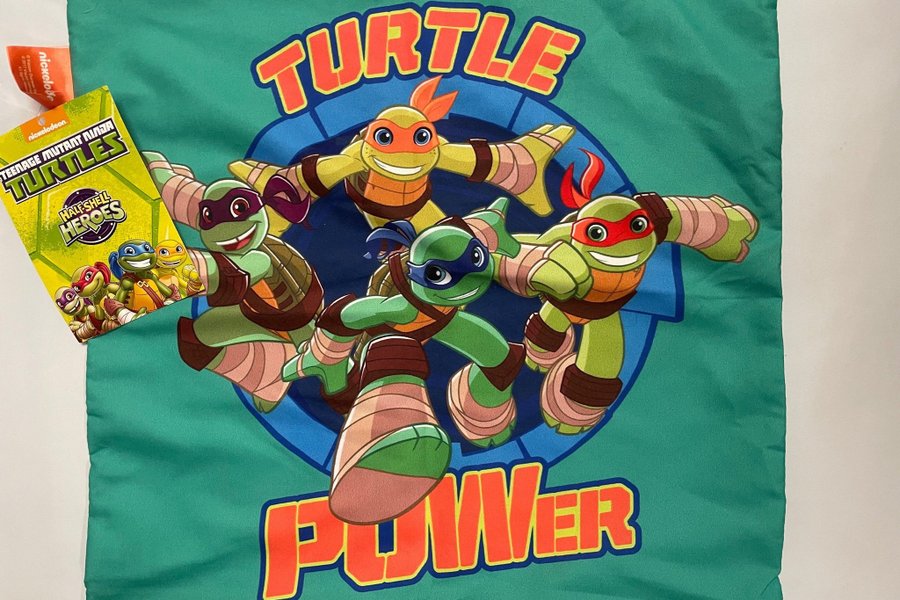 Ett färgglatt kuddfodral med ett tryck av Turtles. Har en dragkedja.