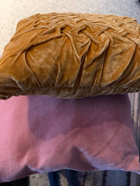 Prydnadskuddar i sammet i en varm ockragul färg med en strukturerad framsida. Baksidan är slät. Passar bra för att ge en lyxig känsla till soffan eller sängen.