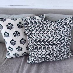 Två eleganta kuddfodral med ett stilrent geometriskt mönster. Perfekt för att ge ditt hem en sofistikerad touch. Baksidan är enfärgad. 40x40