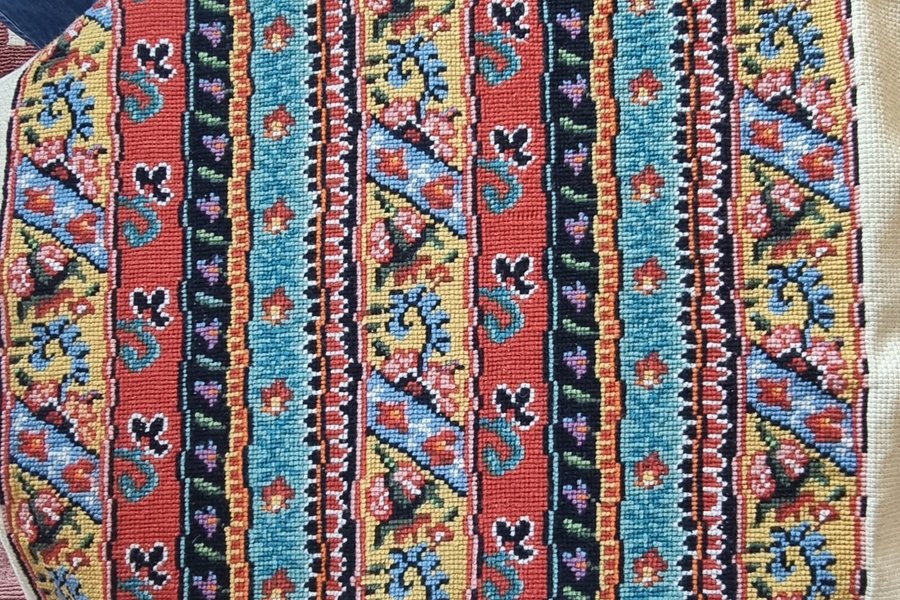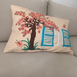 Handbroderad kudde