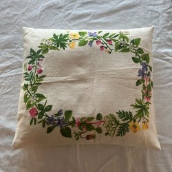 Kuddfodral i crémevit färg med ett detaljerat mönster. Fodralet har en mjuk textur och passar bra för att förnya utseendet på en kudde.