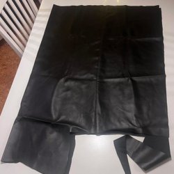 Ca 70 x 110 cm, mörkblått randvävt tyg,