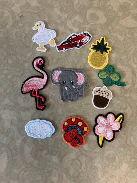 10 st tygmärken att sy eller stryka på.