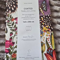 Färgglatt tyg med ett livfullt mönster av tropiska löv och frukter. Tyget är fållat runt om men skarvat på mitten utan mönster passning. Måtten ca 178x142cm. Gott använt skick. Hitta på något kul! Kommer inte ihåg vad jag använt tyget till möjligtvis som duk.